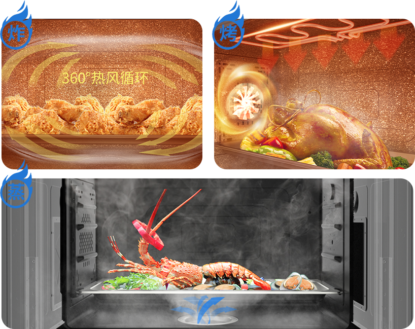 擁有四大烤制模式,三大蒸菜模式,